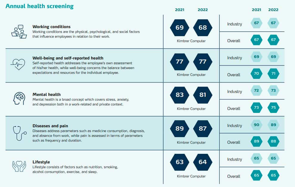 - Pracovat na uznání "Skvělého místa pro práci" v našem odvětví, usilovat o nulové ztráty času v důsledku úrazů do roku 2030 a vytvořit pracoviště, kde je každý zaměstnanec hrdým vyslancem společnosti Kimbrer.